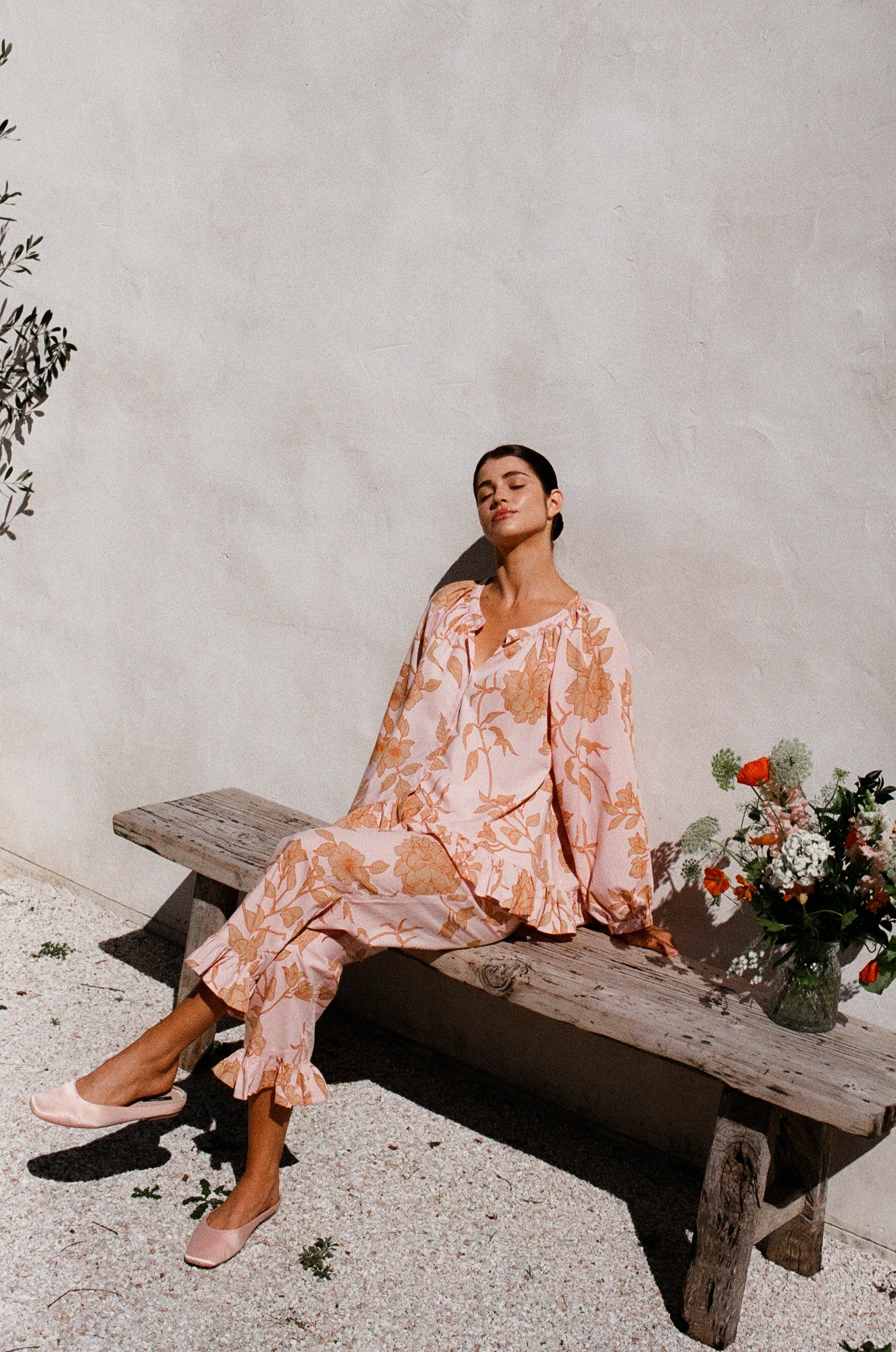 Sophie Sleep Set - Pants - Cotton Modal - Romantic Floral Peach