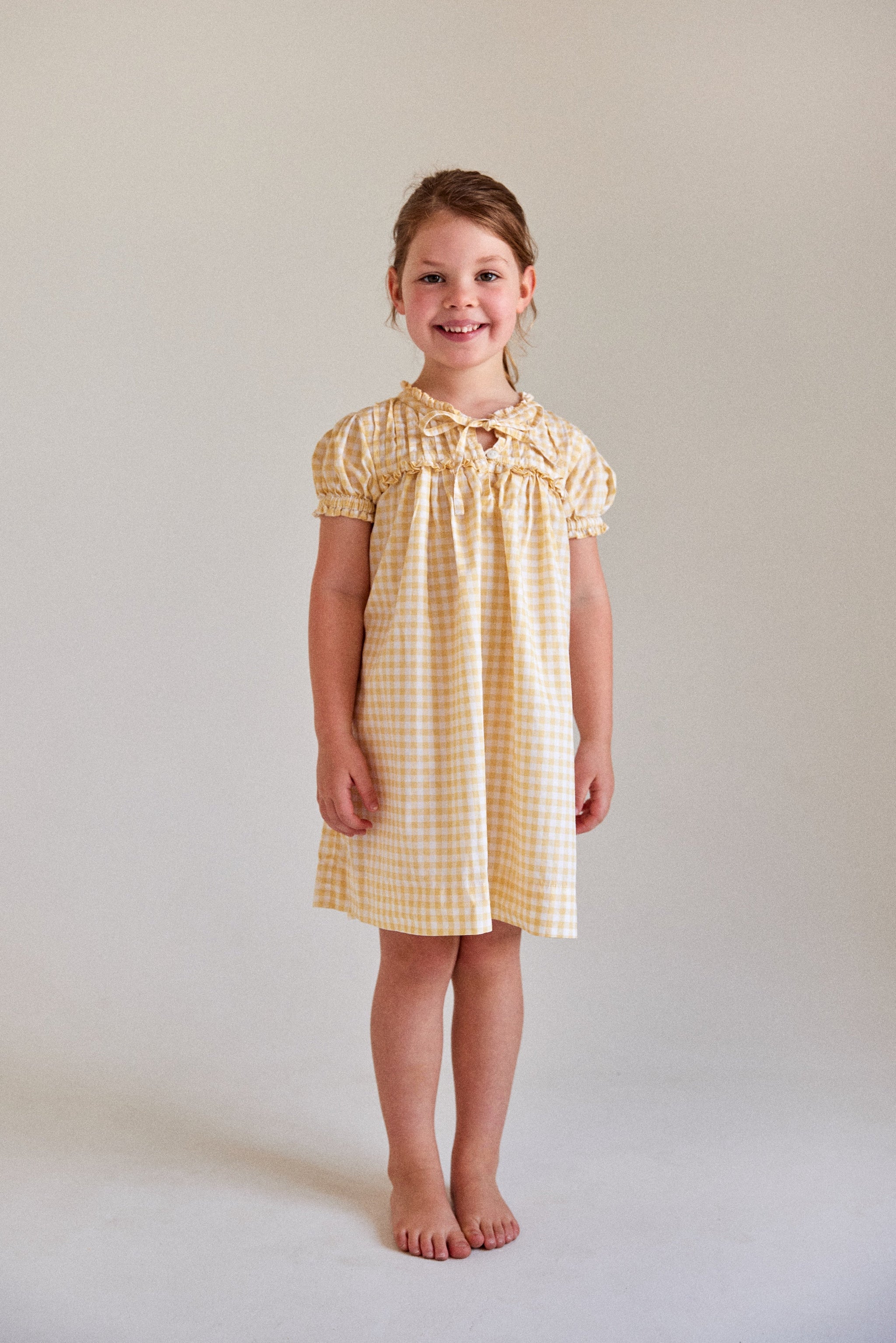 Girls Lounge Dress - Cotton - Gingham Yellow