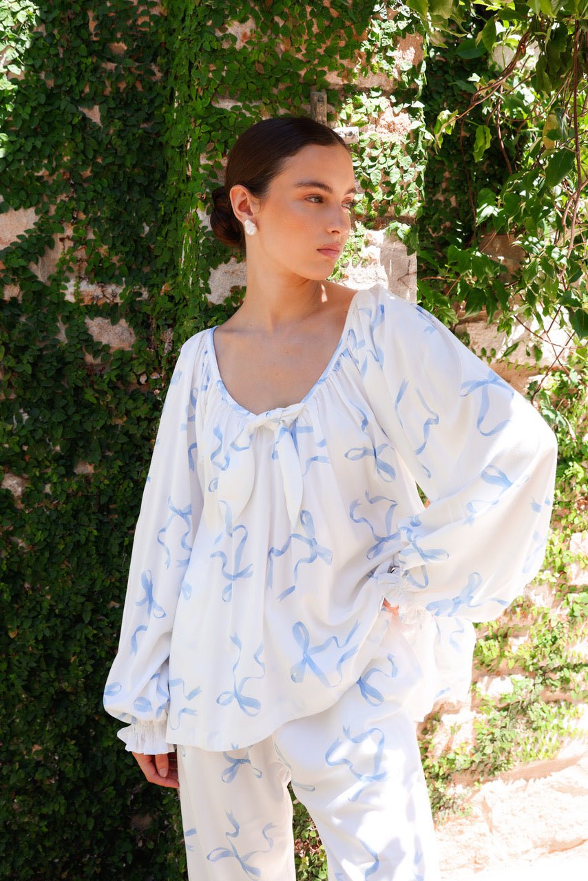 Hand painted by inspiring local creative @jasminedowling, Bow embodies Something Blue, ideal for those unforgettable wedding moments. Printed on our signature soft 100% Rayon, it's a dream to sleep in.