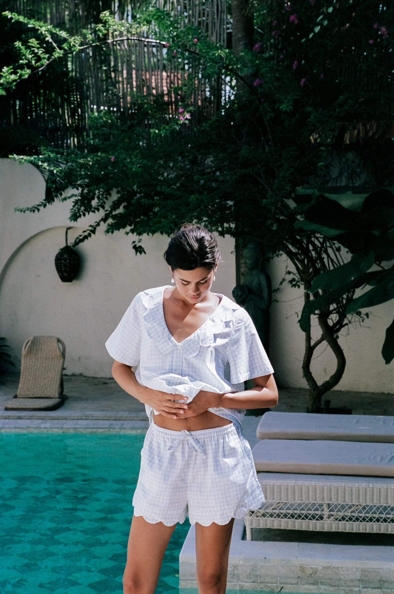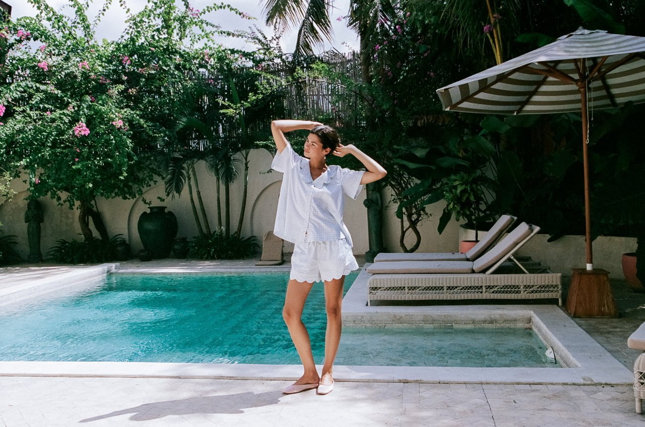 Our beloved Penelope Pyjama Set brings timeless charm to your lounge moments. Crafted from premium cotton, and adorned with a Peter-Pan scalloped collar, this timeless ensemble will become a favourite.