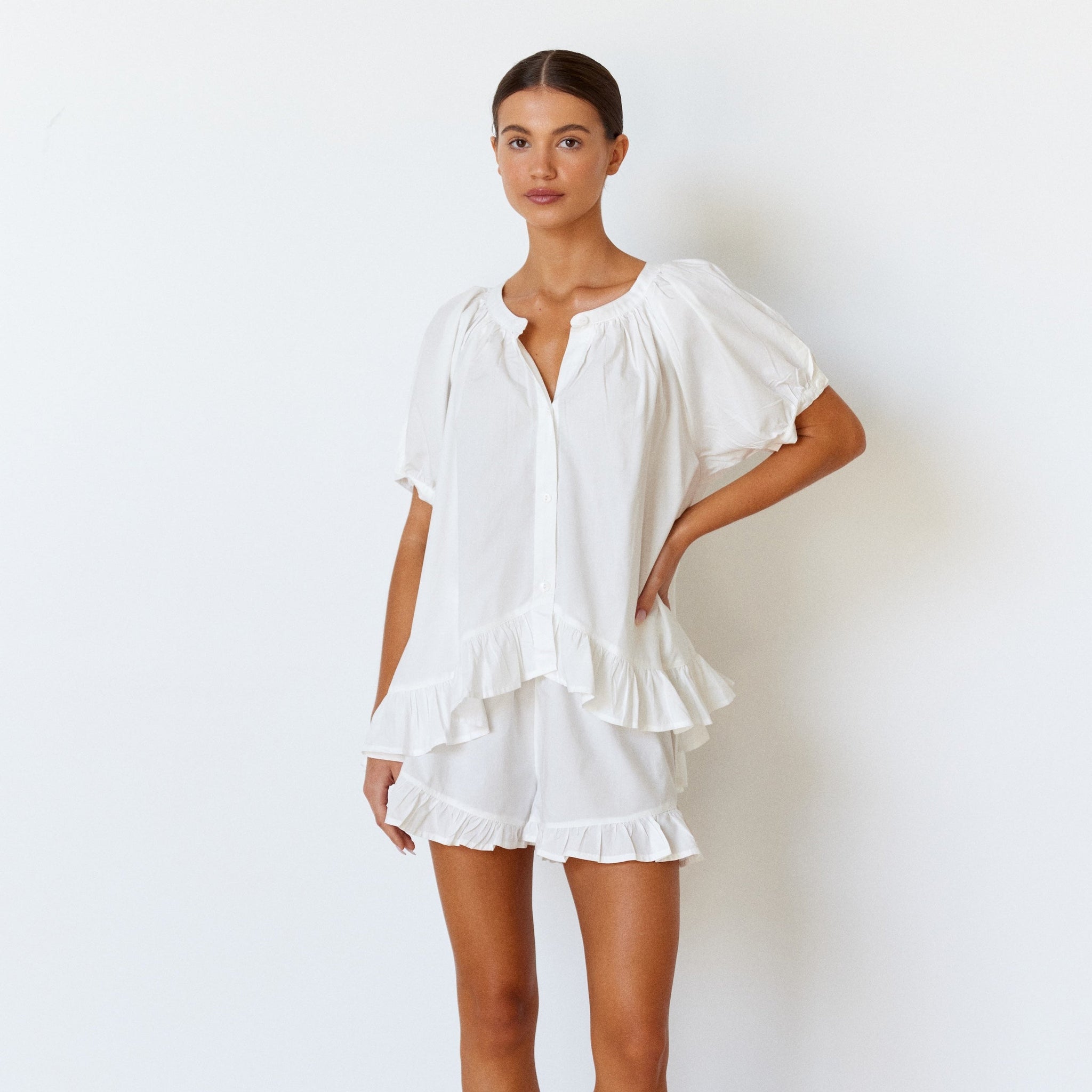 Ruffles galore, our Sophie Pajama Set is relaxed glamour at its finest. Cut in a buttery soft Cotton & LENZING™ Modal blended fabric. Known for its superior softness & durability, you will feel the difference.