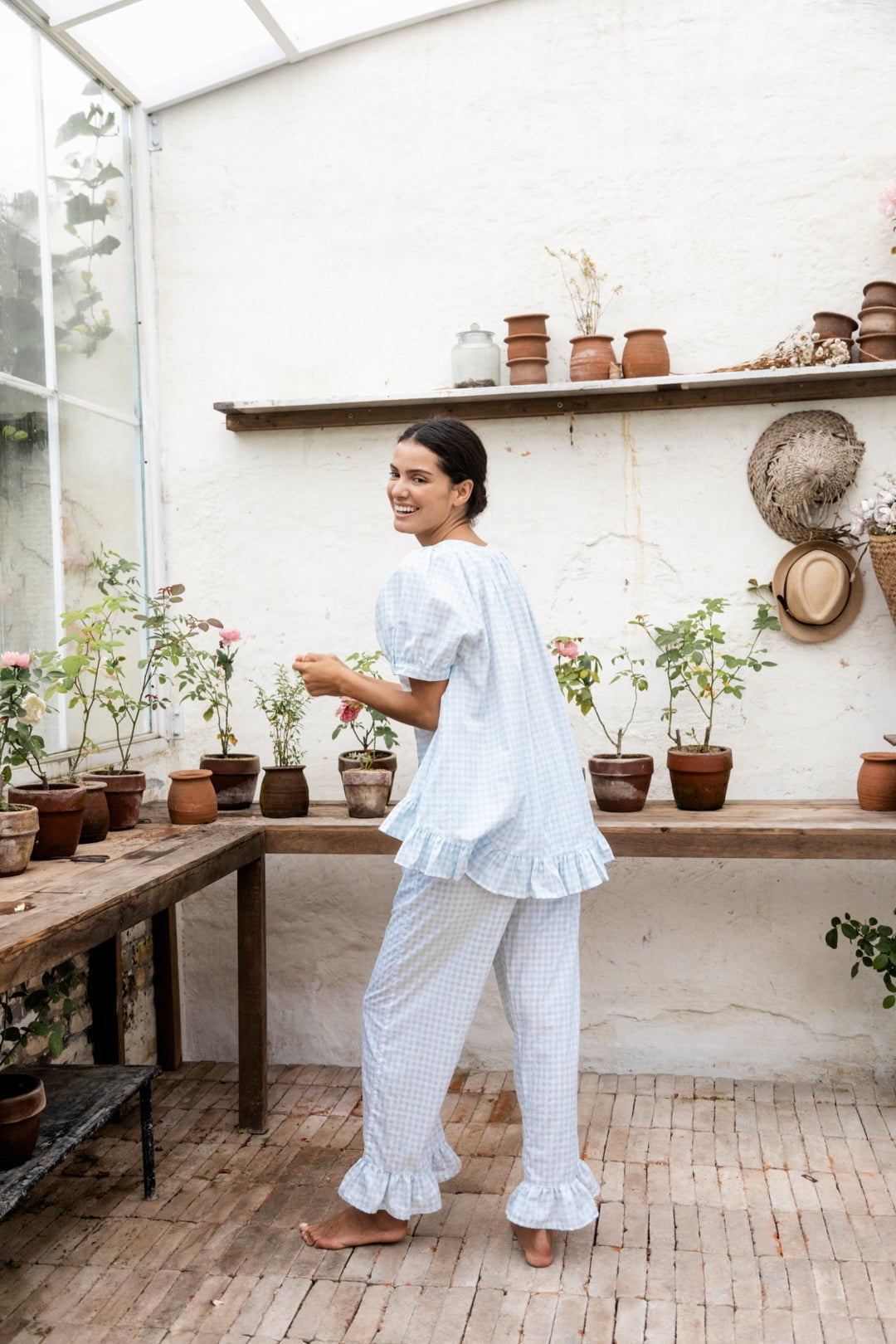 Sophie Sleep Set - Pants - Cotton - Gingham Pale Blue