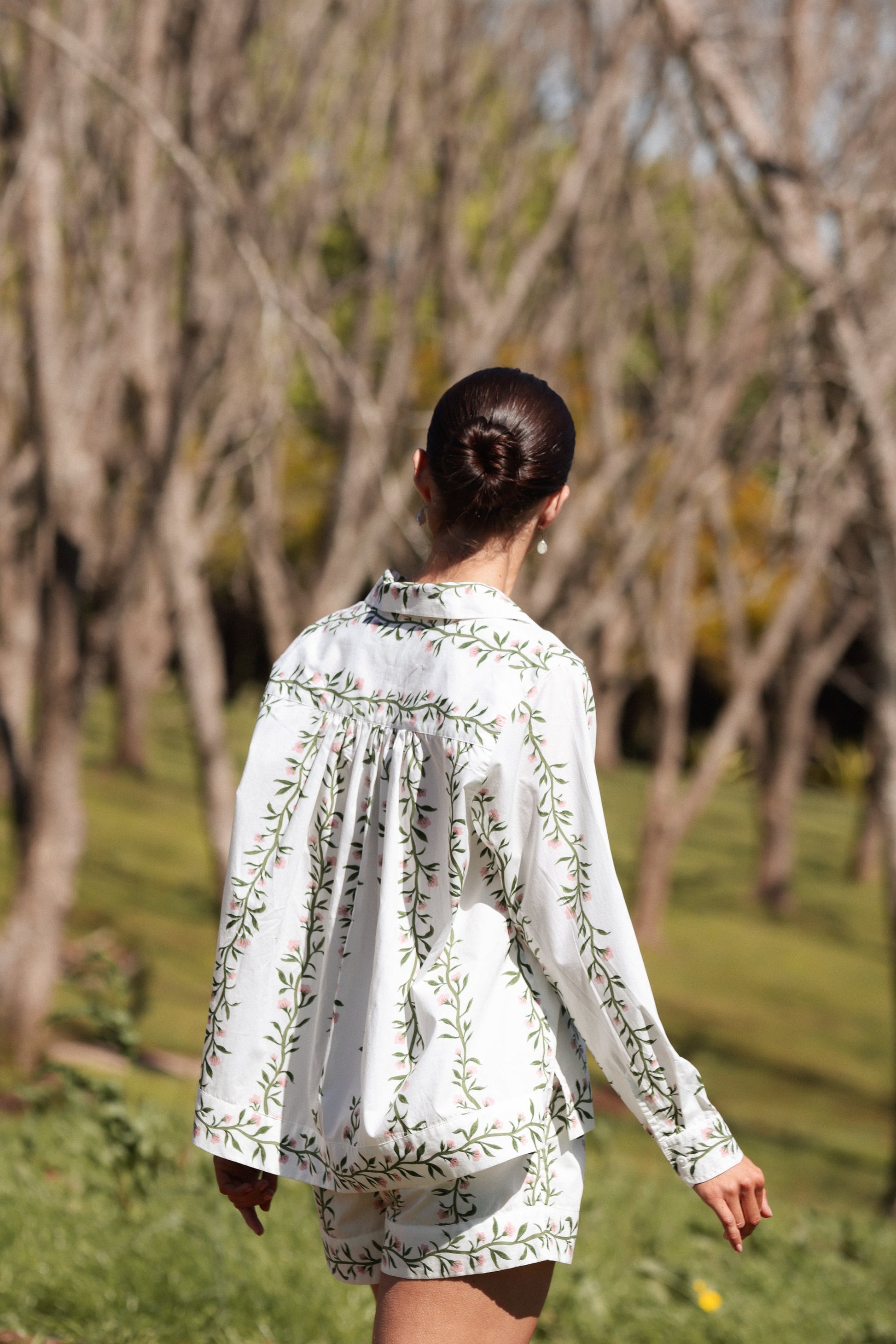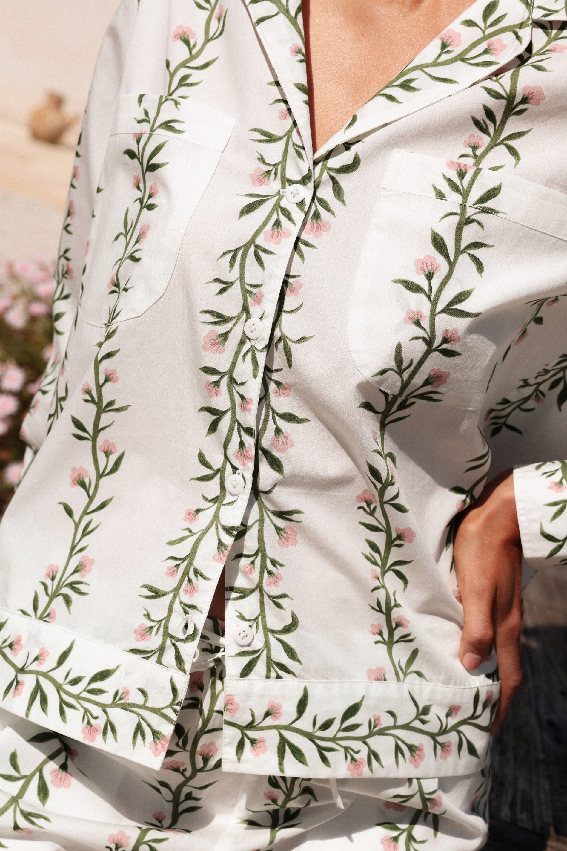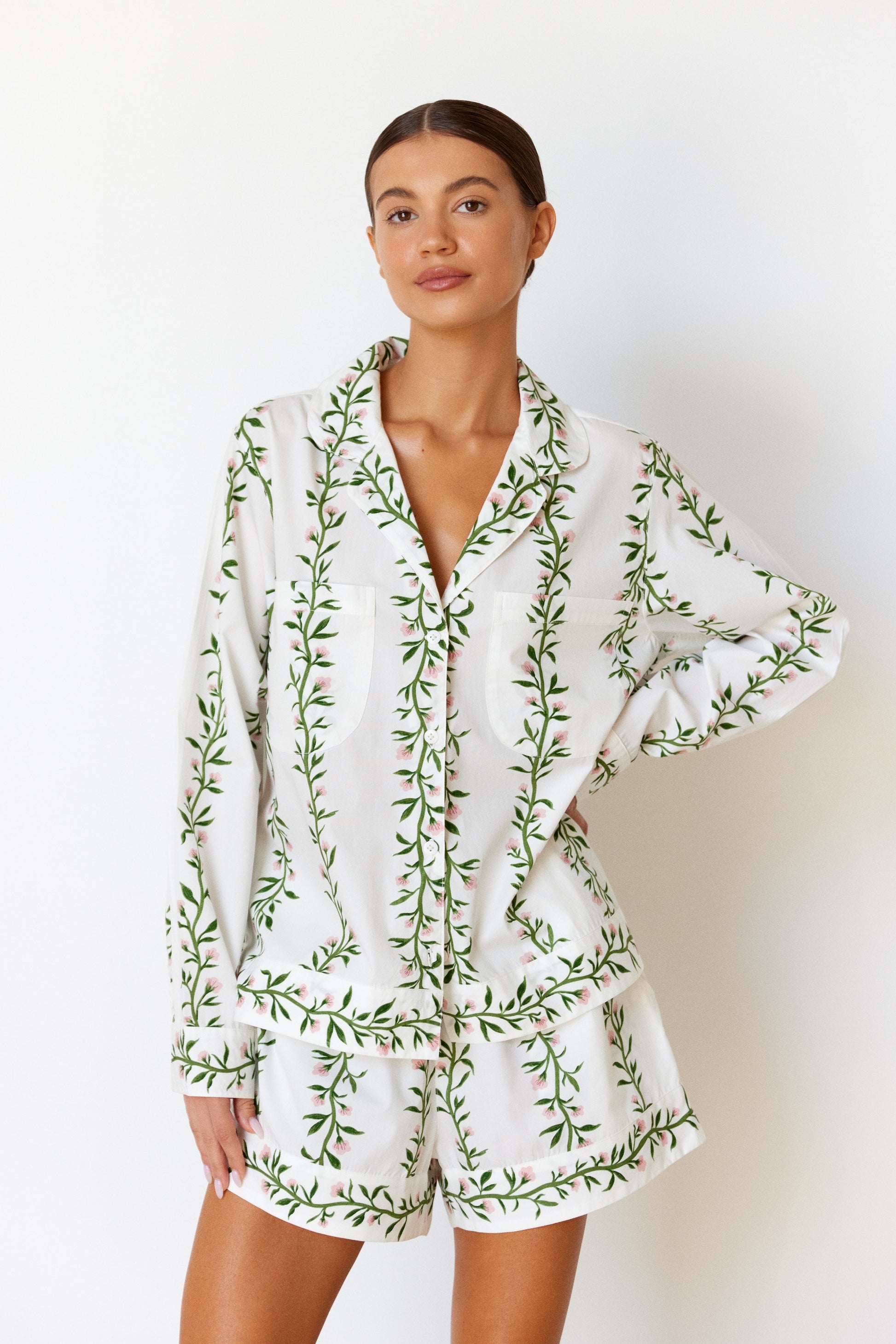 Say hello to our newest shade of Vine - a soft pink hue. Illustrated by @emilyisabella, this watercolour vine motif brings intricate detail to this feminine pajama set.