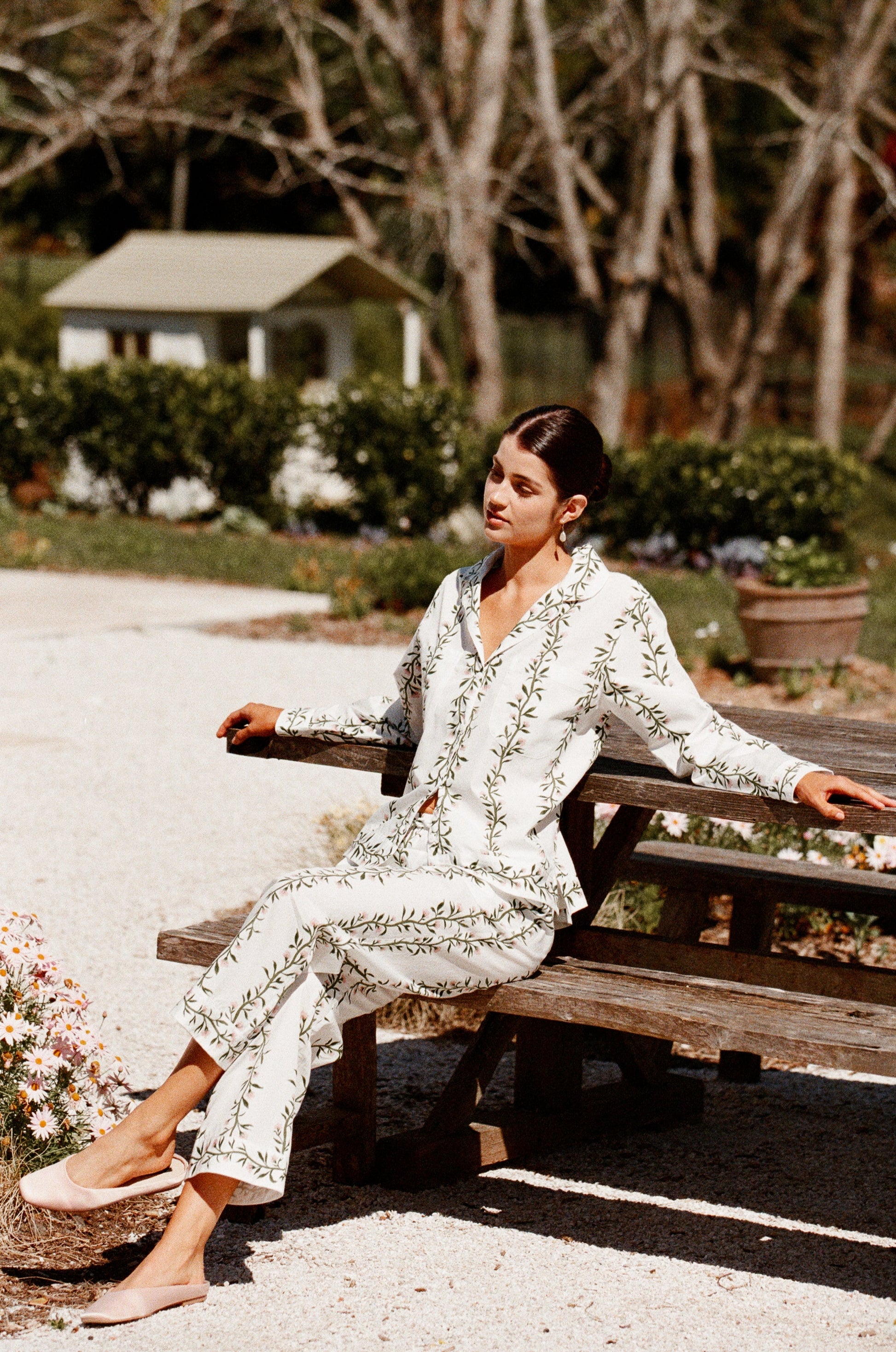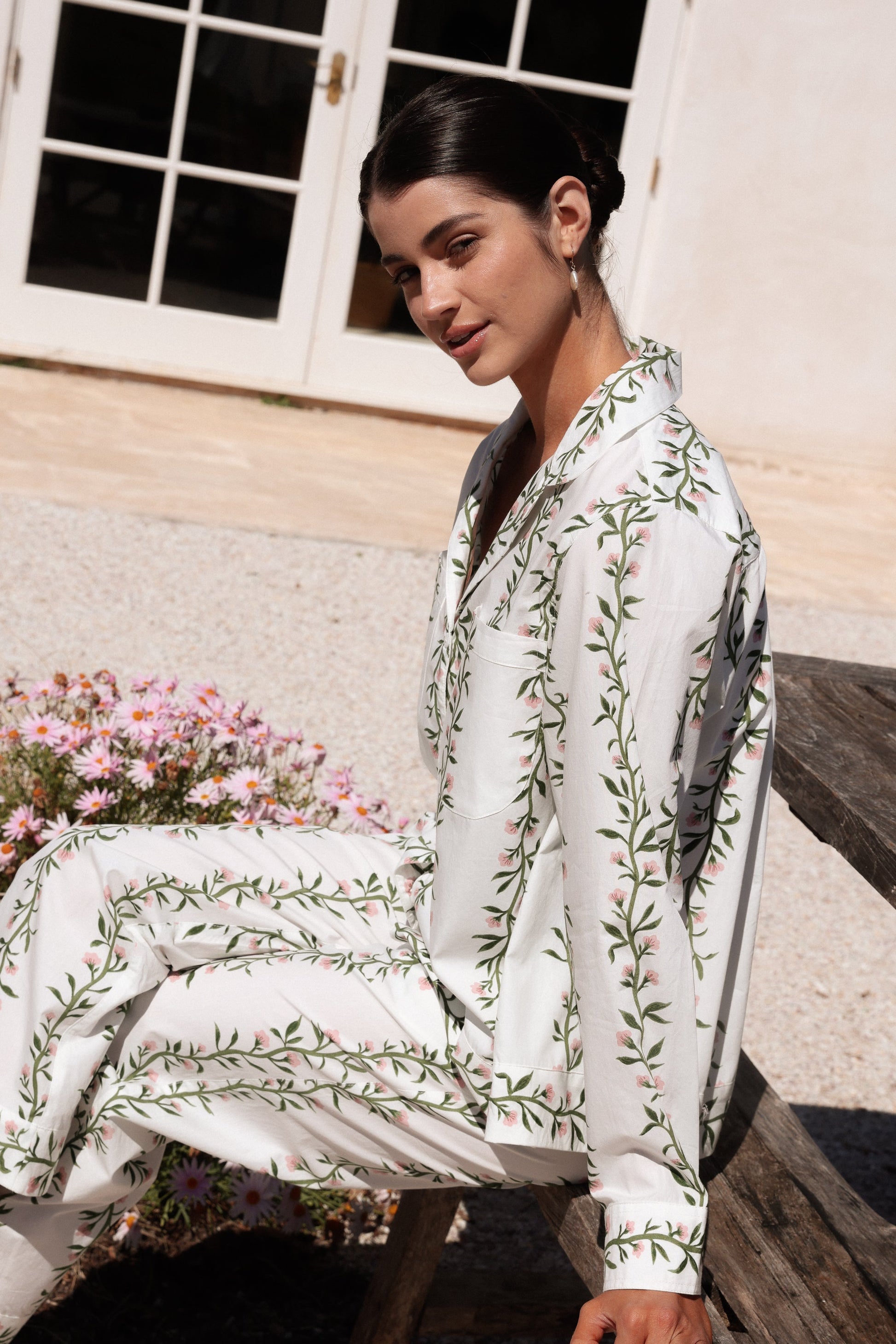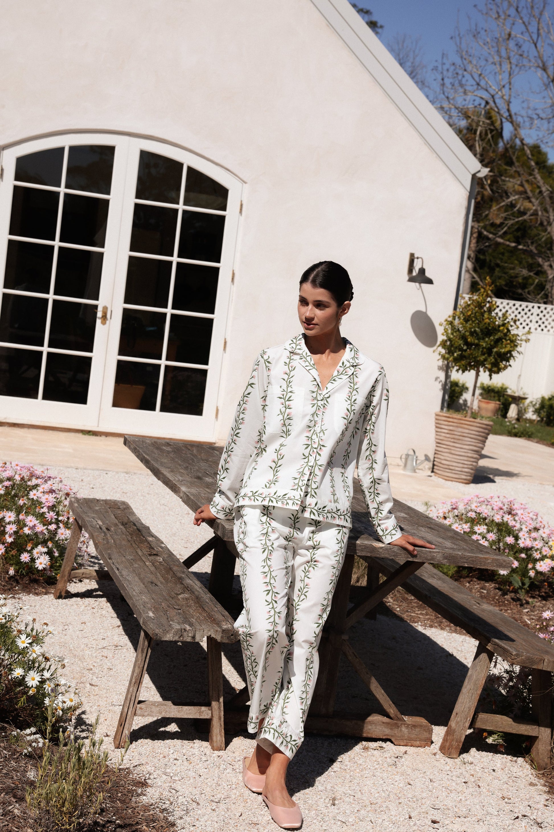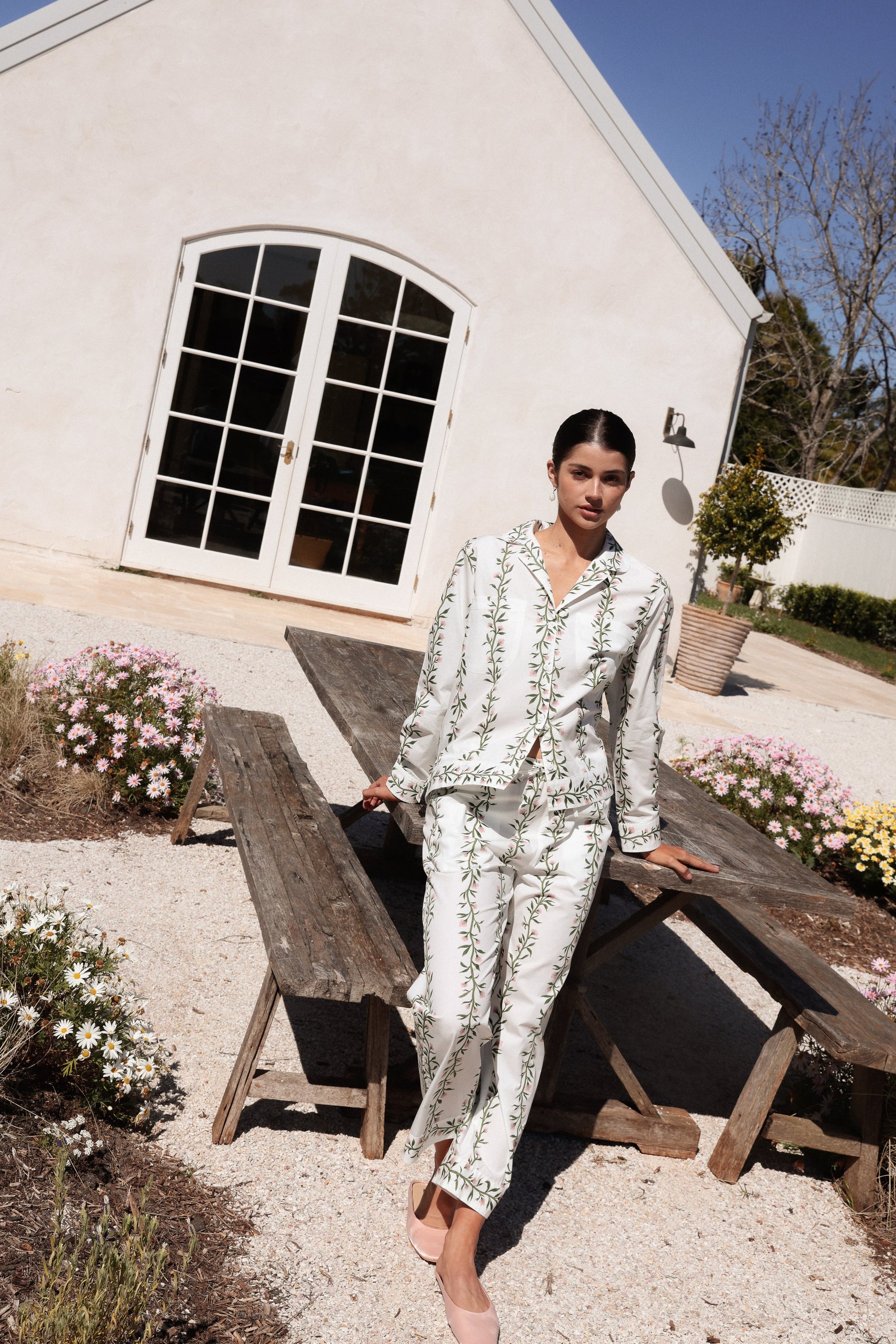 Our delicate Vine motif is showcased here in the Emily Sleep Set - a modern yet feminine button-down ensemble. Print designed in collaboration with the talented @emilyisabella