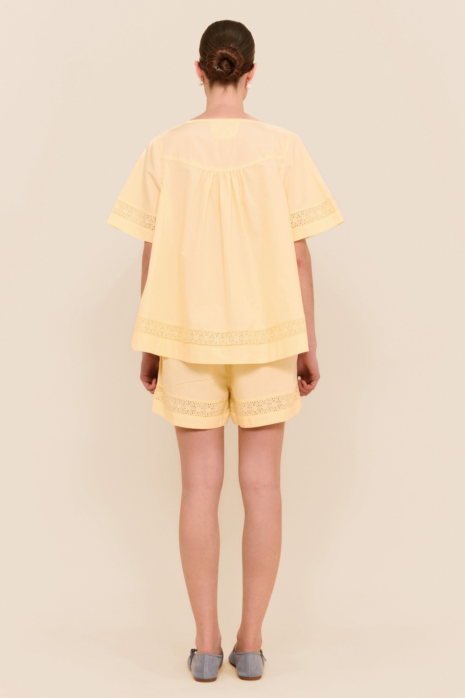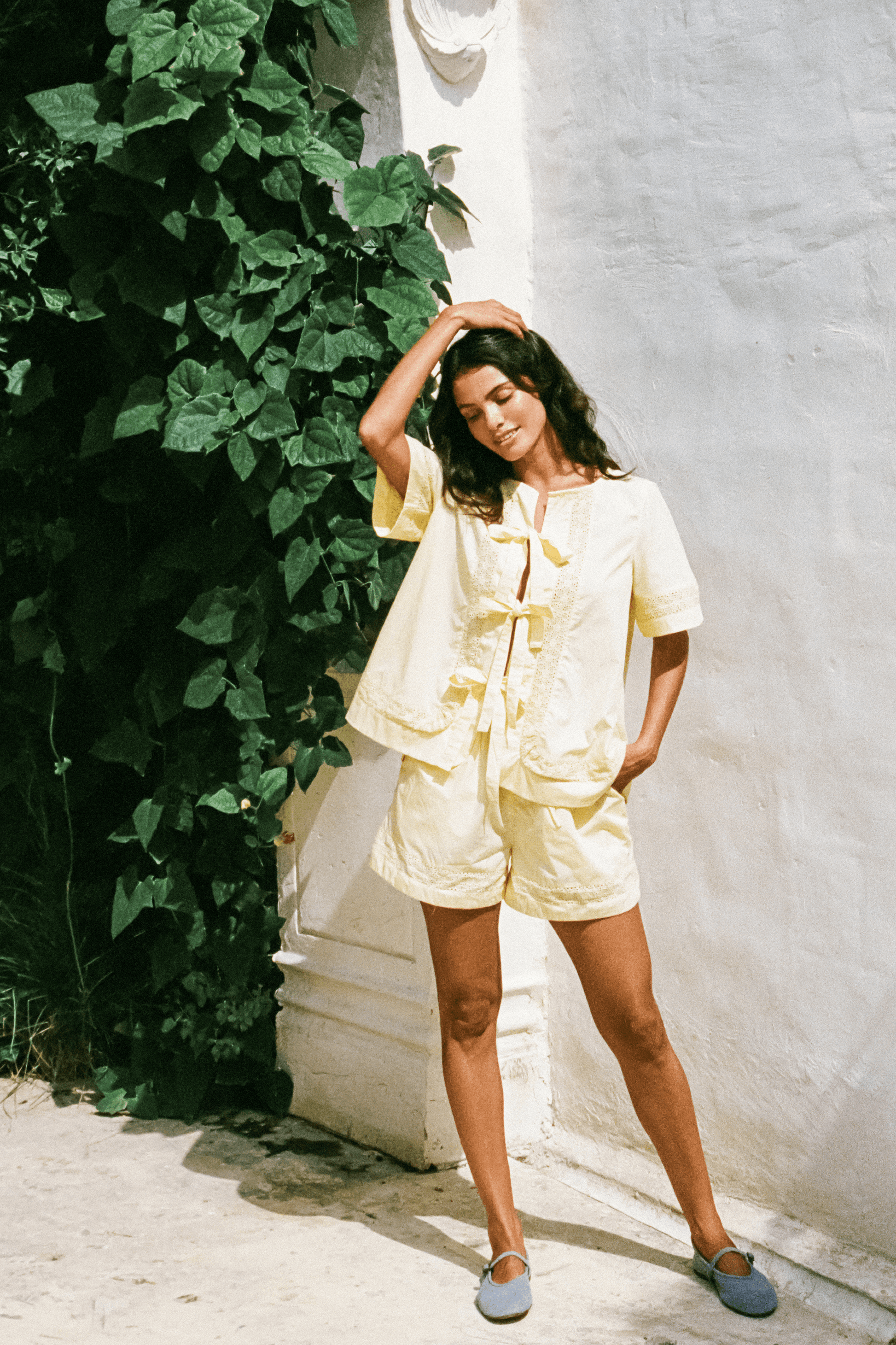 This special lounge set was designed to be worn as versatile sleep or resort wear. Intricate detailing elevates this comfortable two piece.