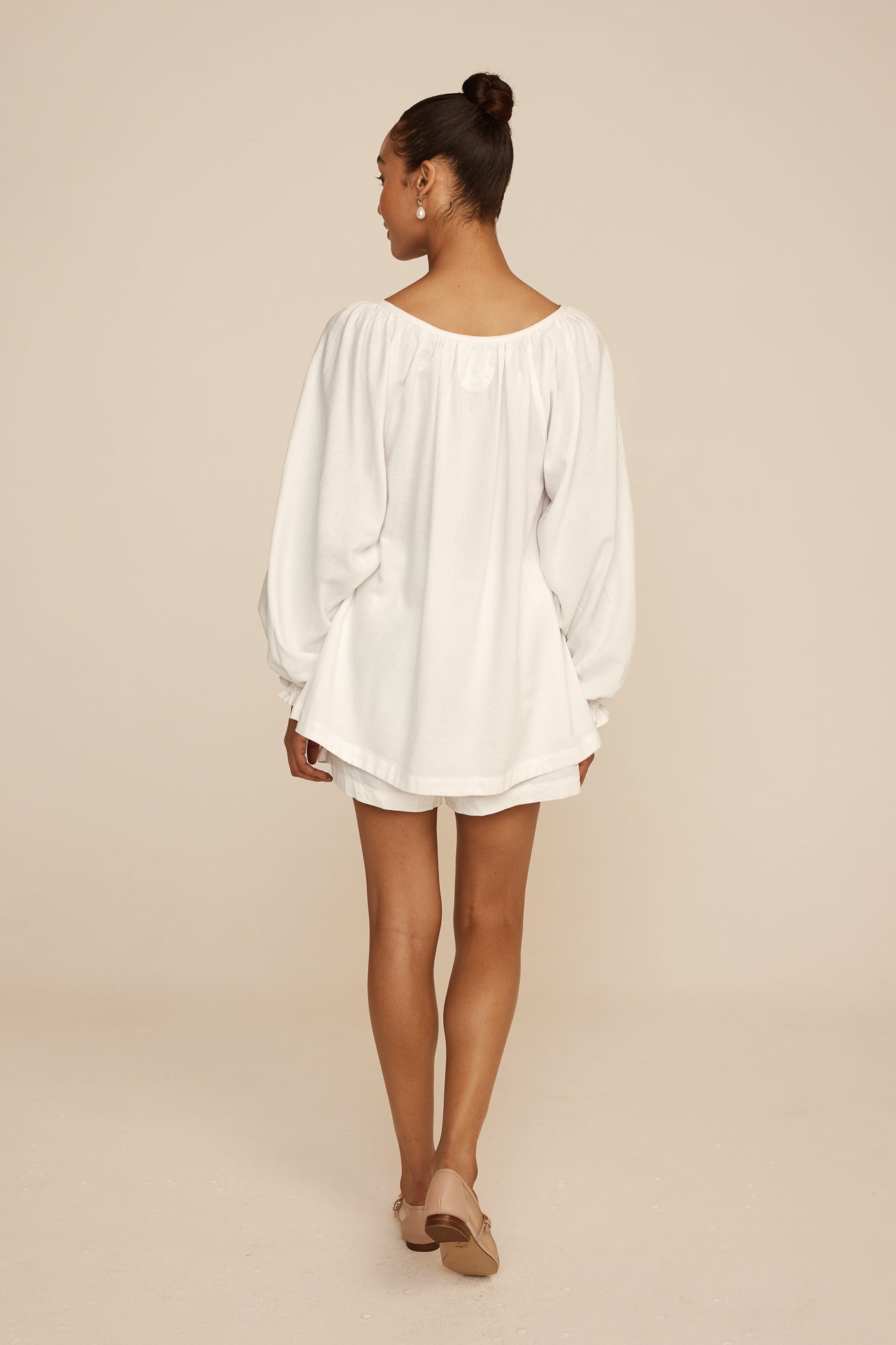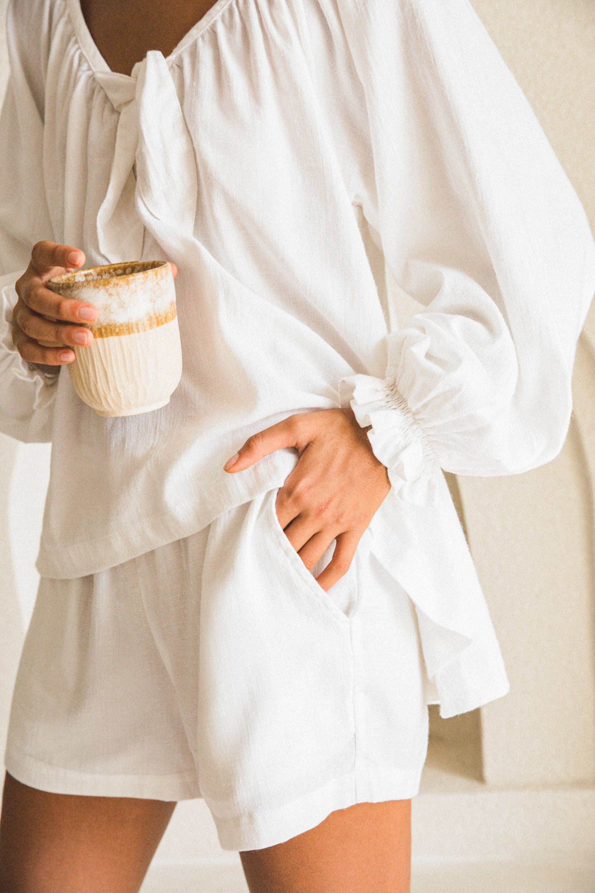 The Heidi Set is romantic lounge set, made for relaxing in style. Featuring a puffy sleeve swing top and matching shorts in new Lyocell Linen fabric.