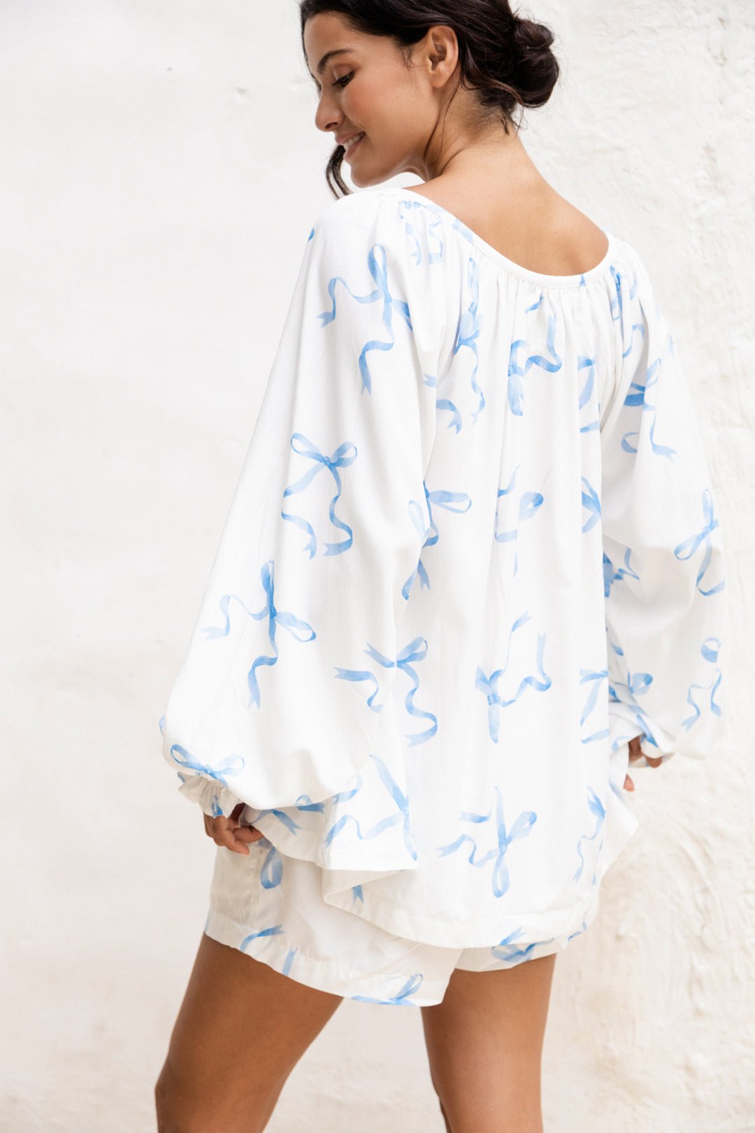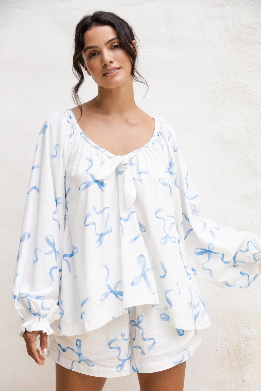 Hand painted by inspiring local creative @jasminedowling, Bow embodies Something Blue, ideal for those unforgettable wedding moments. Printed on our signature soft 100% Rayon, it's a dream to sleep in.