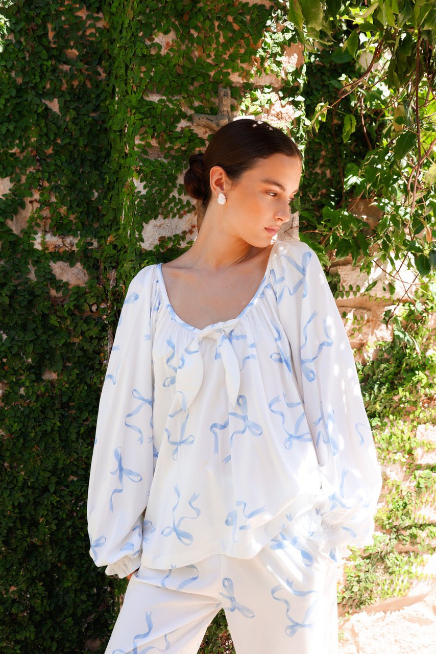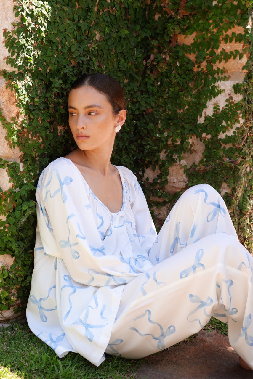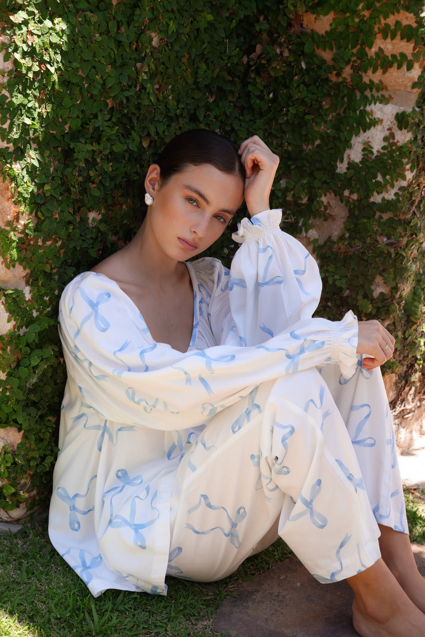 Hand painted by inspiring local creative @jasminedowling, Bow embodies Something Blue, ideal for those unforgettable wedding moments. Printed on our signature soft 100% Rayon, it's a dream to sleep in.