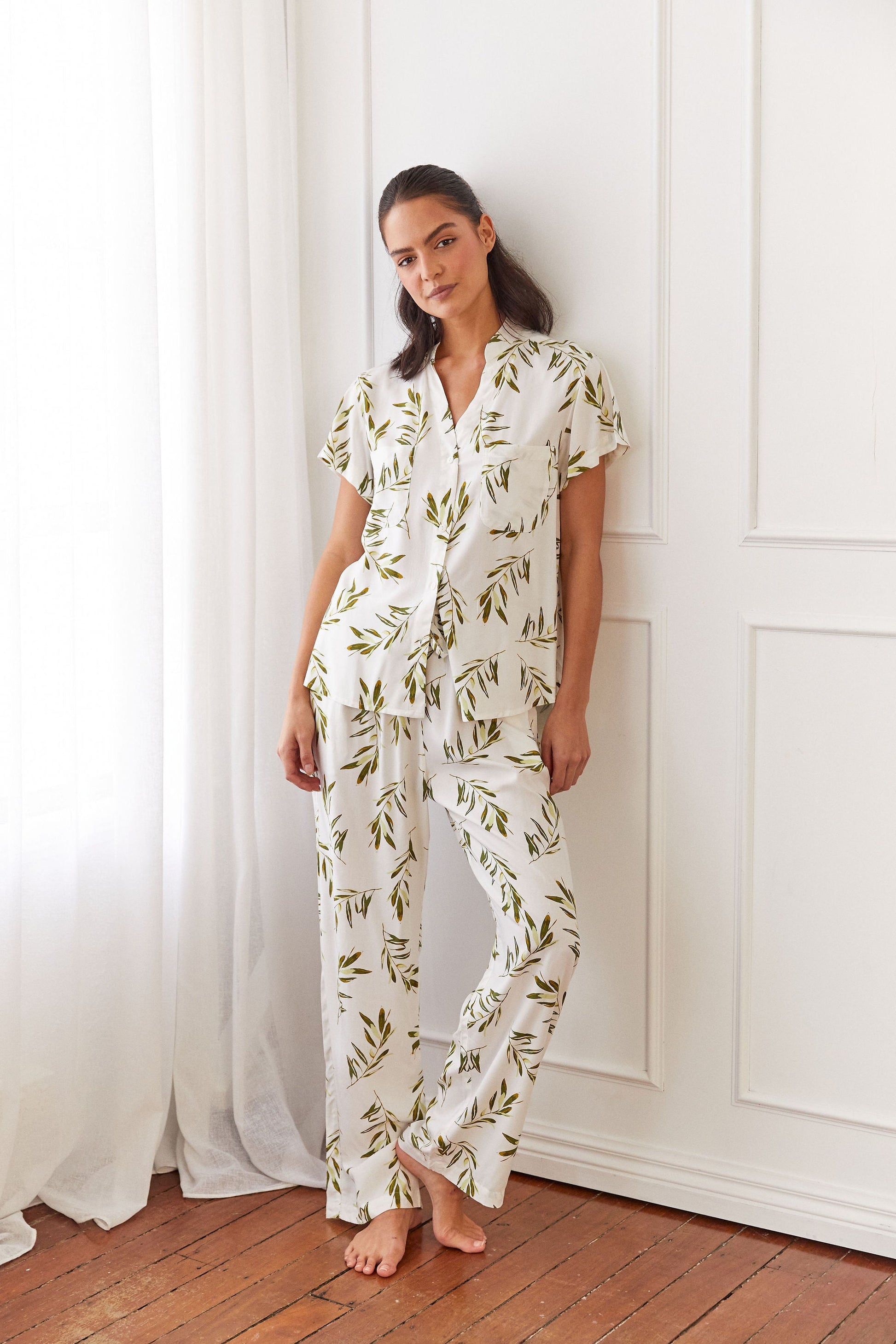 Maggie Pajama Set - Long Pants - Olive Leaf