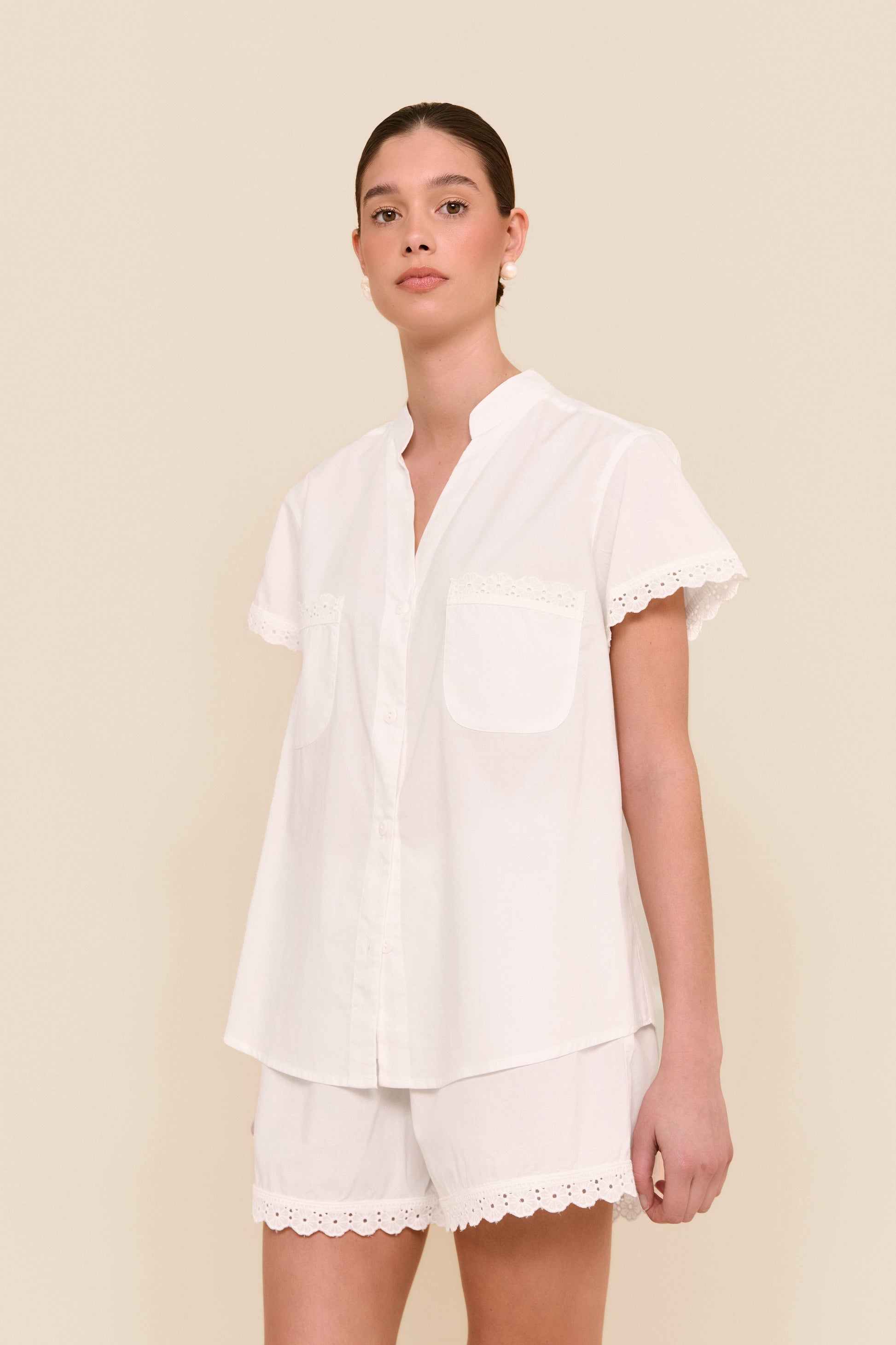Maggie Pyjama Set - Bridal - Cotton Modal - Off White + Daisy Trim