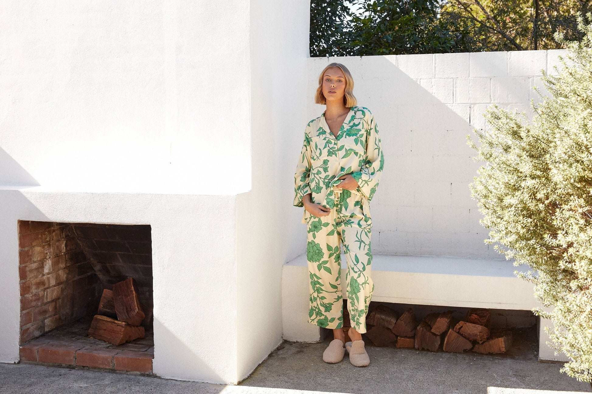 The Peta Pajama Sleep Set is irresistibly comfortable, crafted from our signature soft rayon. Features a boxy-cut top with bust pockets and buttons.