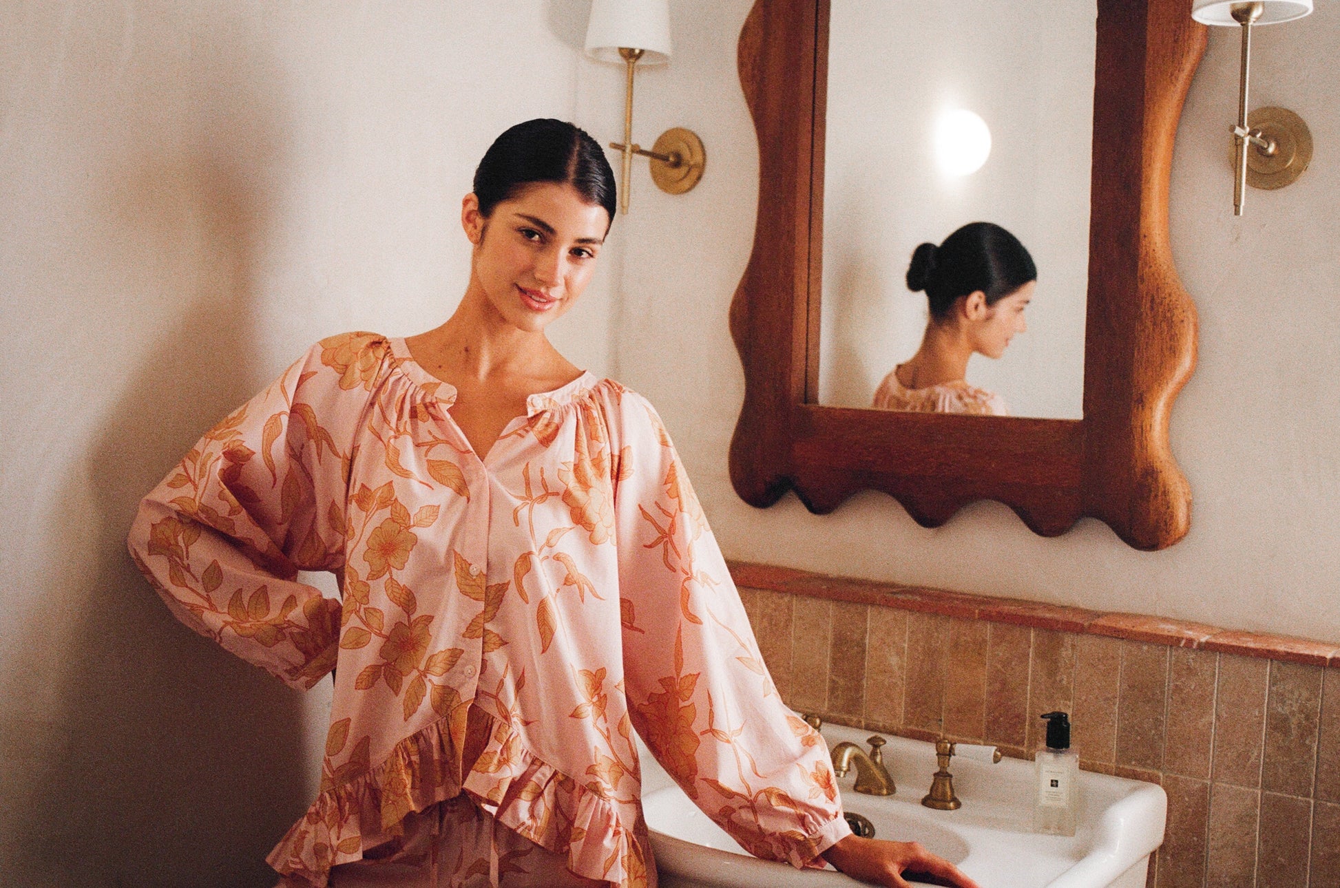 All the ruffles, all the charm. The Sophie Pajama Set redefines everyday luxury in a Cotton + LENZING™ Modal blend that’s as soft as it is sustainable. Feel the difference, and fall in love with the comfort.