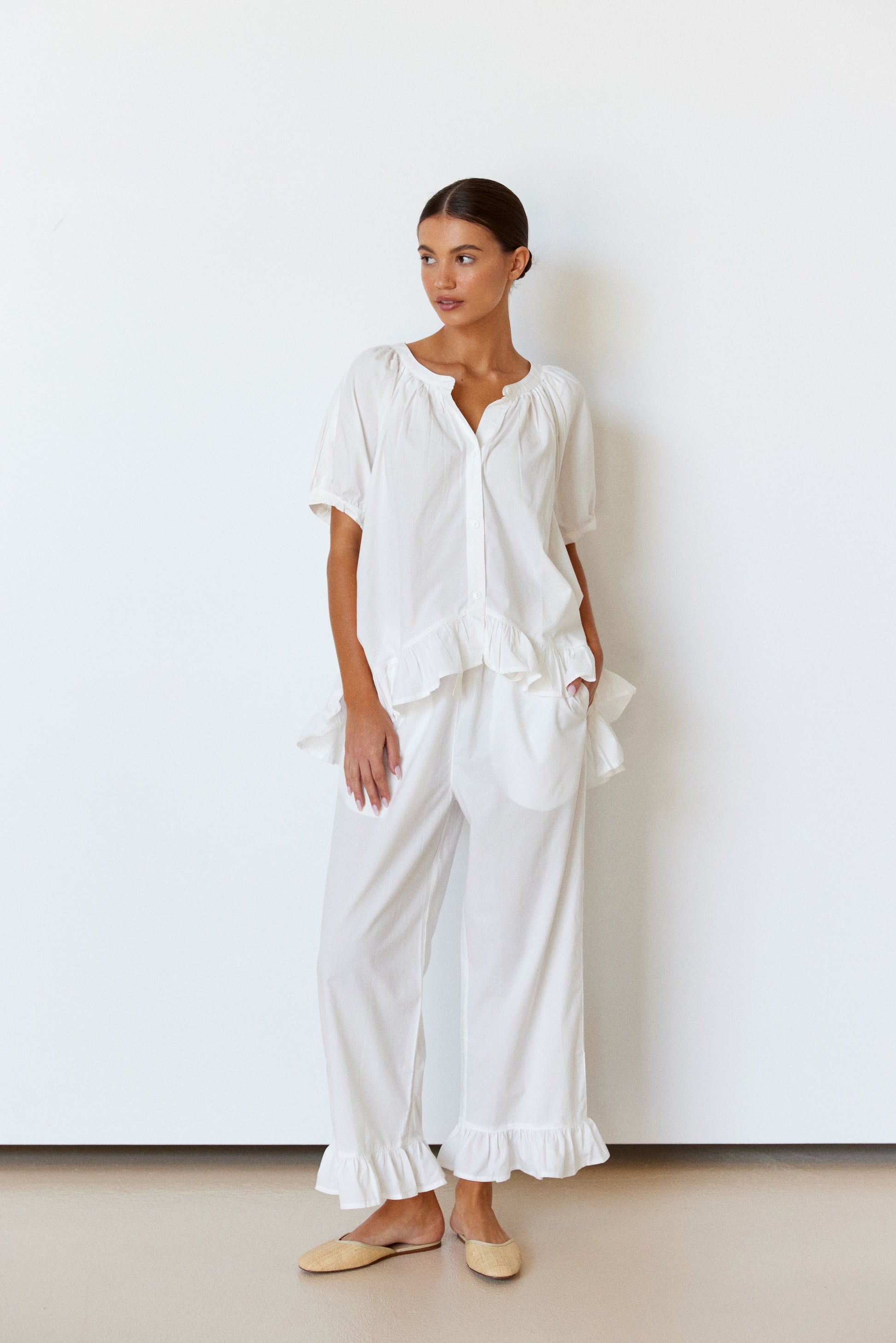 Ruffles galore, our Sophie Pajama Set is relaxed glamour at its finest. Cut in a buttery soft Cotton & LENZING™ Modal blended fabric. Known for its superior softness & durability, you will feel the difference.